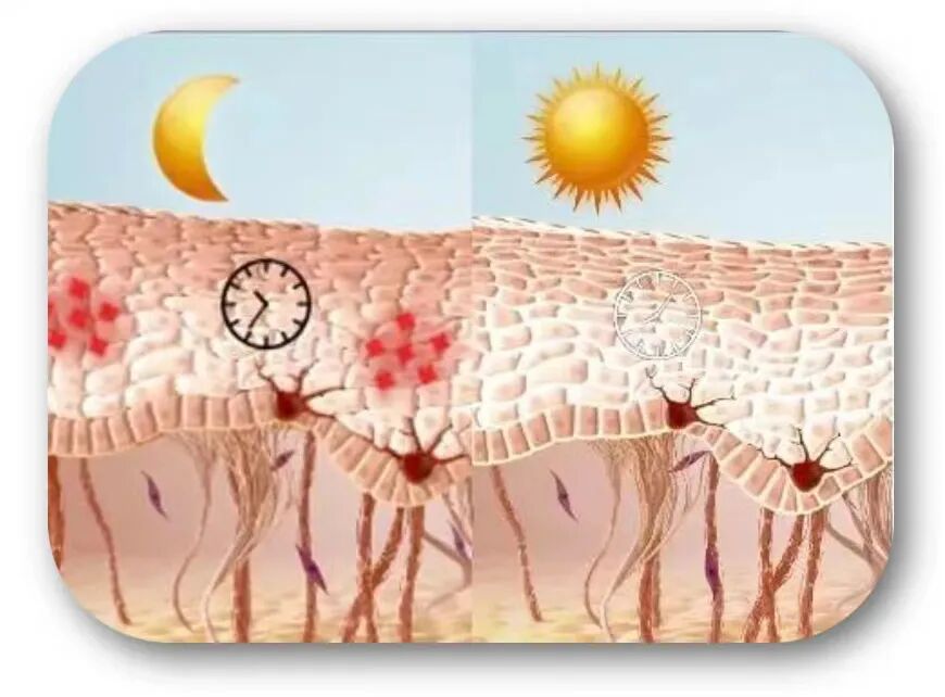 皮肤作为人体最大的器官,激素的变化影响着皮肤的生理性能和美观,同时这种影响随着激素水平的昼夜变化,相应地表现出节律性,也就是皮肤的生物钟。